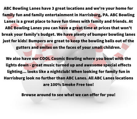 entertainment in Harrisburg, PA. ABC Bowling Lanes is a great place to have fun times with family
