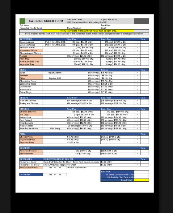 Catering Order Form
