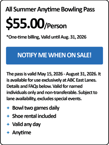 available for use exclusively at ABC East Lanes.